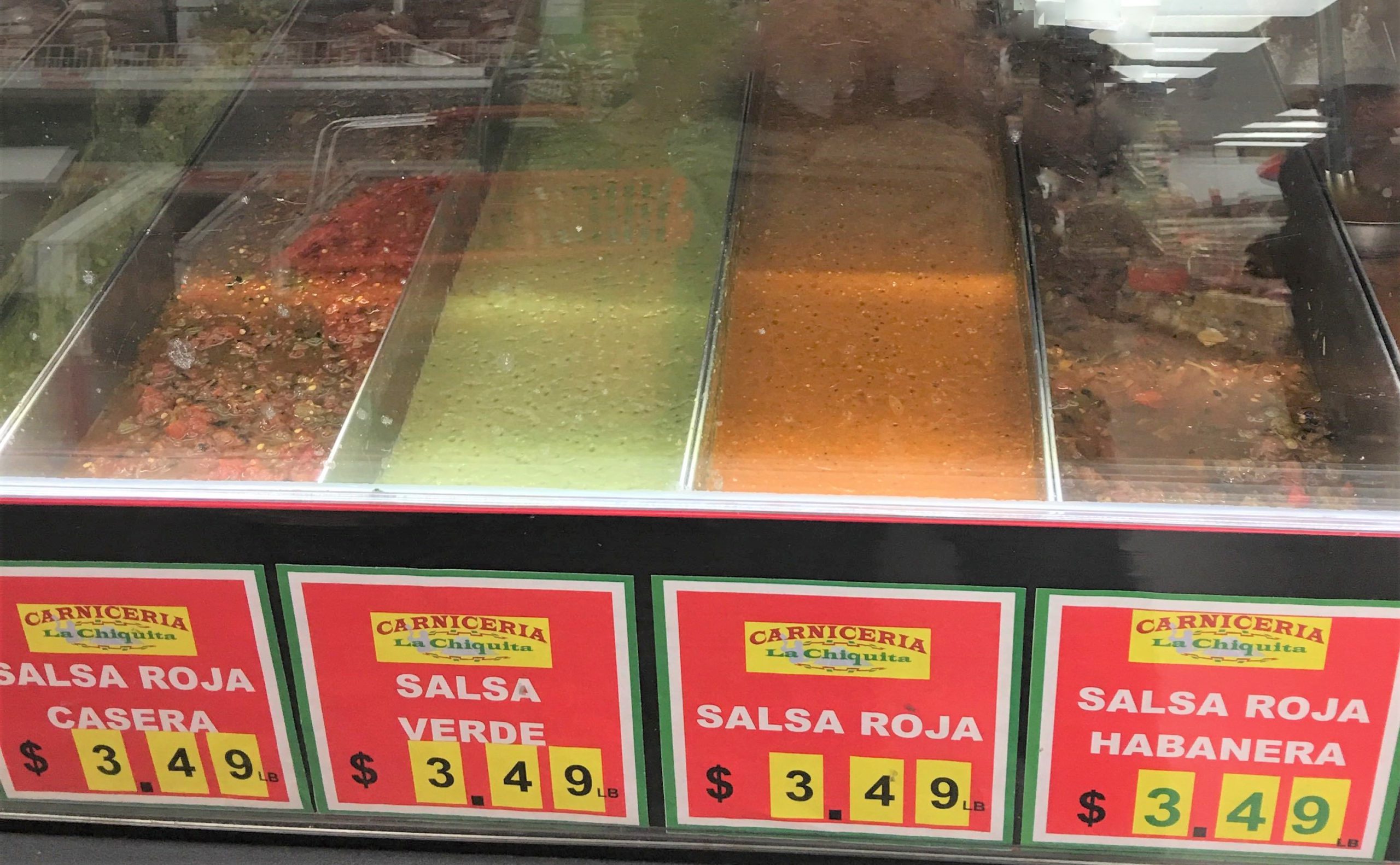 これぞ多民族国家アメリカの醍醐味とでも言うべきもののひとつに、アメリカにいながらにして他国に来たかのような経験が身近に出来ちゃうこと、その最たるものがその地区に多く居住する移民や他国にルーツのある人々のライフスタイルに則したお店でのショッピング。例えば日本人および日系アメリカ人が多く住む街には日系スーパーがあったりという具合ですが、ここでご紹介するのはメキシコ移民およびメキシコ系アメリカ人御用達のデリ、Carniceria La Chiquita Meat Market & Deli 。店に一歩入った瞬間異国というかメキシコに来た感覚にどっぷり浸れます。サインやラベルがスペイン語表示(ものによっては英語併記もあり)なのでチャレンジ精神が駆り立てられます。